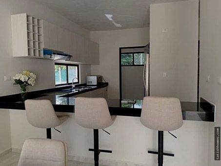 Estrene casa al sur de Cancún, ubicada muy cerca de centros comerciales, colegios y avenidas. Esta propiedad cuenta con acabados de primera y con buena distribución, cuenta con amplia cocina integral con barra de granito, sala, tres recamaras con closets, la principal con vestidor, dos baños completos y medio baño para visitas, sala de tv. área de lavado, patio, estacionamiento para dos vehículos y bodega. Se entrega con tanque estacionario para gas y cisterna.